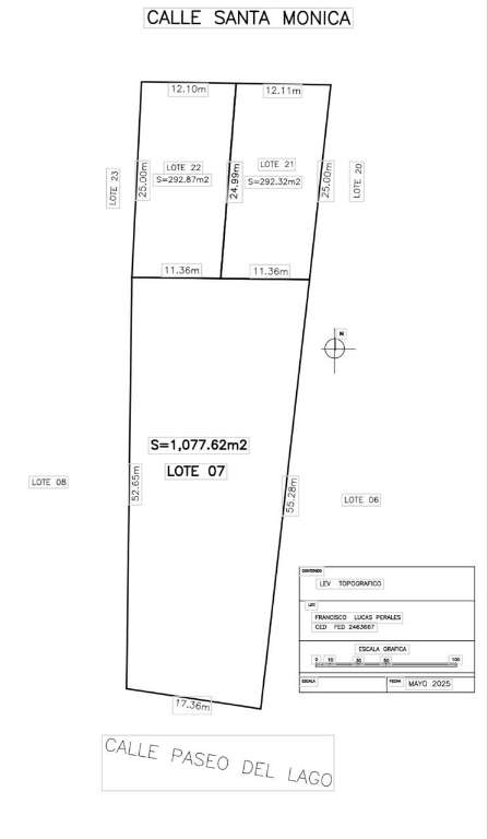 Discover this incredible lot for sale in Riberas del Pilar, located on the closed street Paseo del Lago. With an area of 1,077 m2, this land offers a frontage of 17.36 meters and a depth of 55.28 meters, providing ample possibilities for the development of a real estate project. Its privileged location, one block from the lake, and its completely flat terrain, facilitate the construction of a small condominium of houses or apartments, perfect for investment for rent or sale. The lot already has water services and is located in a quiet area with little traffic, ensuring a safe and pleasant environment.