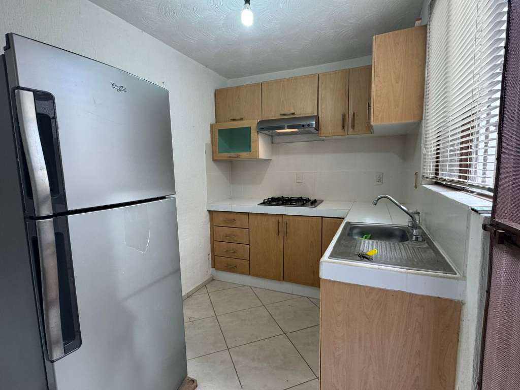 The house is rented with some furniture, including: a dining set for 6 people, two single beds, 3 nightstands, a 6-burner cooktop, and a refrigerator.