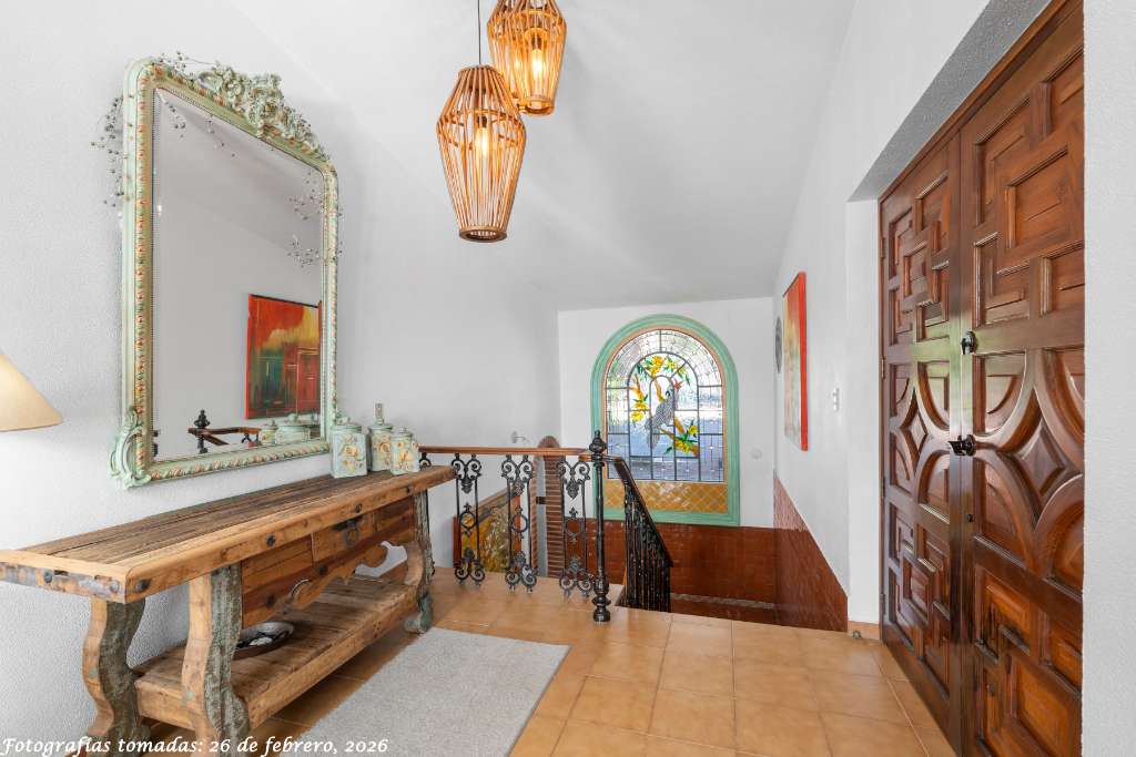 Mexican Charm abounds with arches, pillars, fountains, stained glass, wrought iron and wood details. Even a hand painted entry mural celebrating a lakeside village with blooming flowers and hummingbirds.