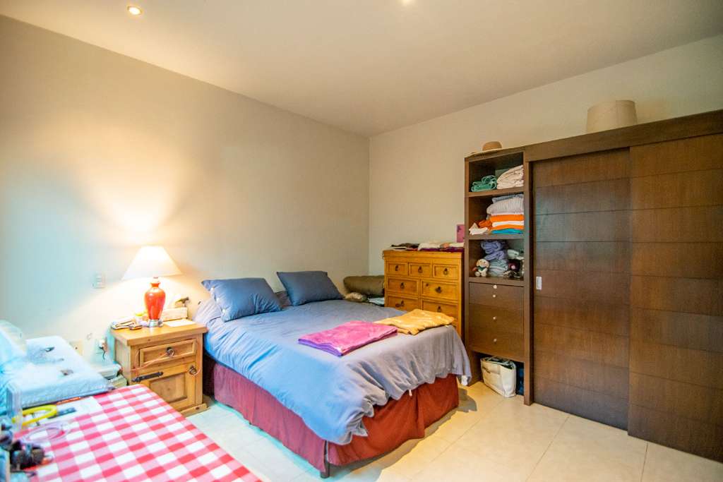 La planta principal cuenta con una amplia cocina, comedor y sala de estar. Hay un medio baño y un patio exterior. La recámara principal tiene baño completo y una bodega anexa que podría convertirse en vestidor si se desea. En la planta superior se encuentra la segunda recámara, también con baño completo. También hay una bonita terraza en la azotea.