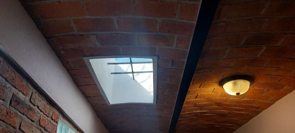 The home is bright with skylights, an open romanesque floorplan and large kitchen.