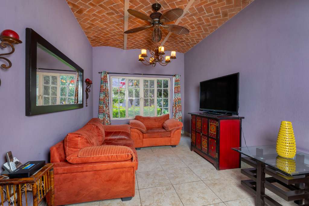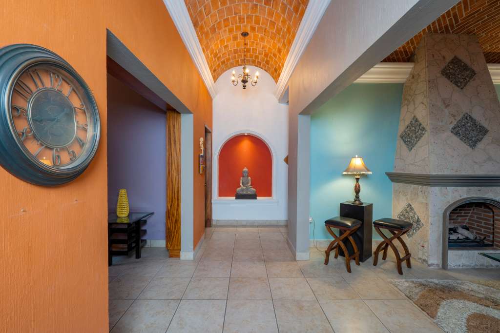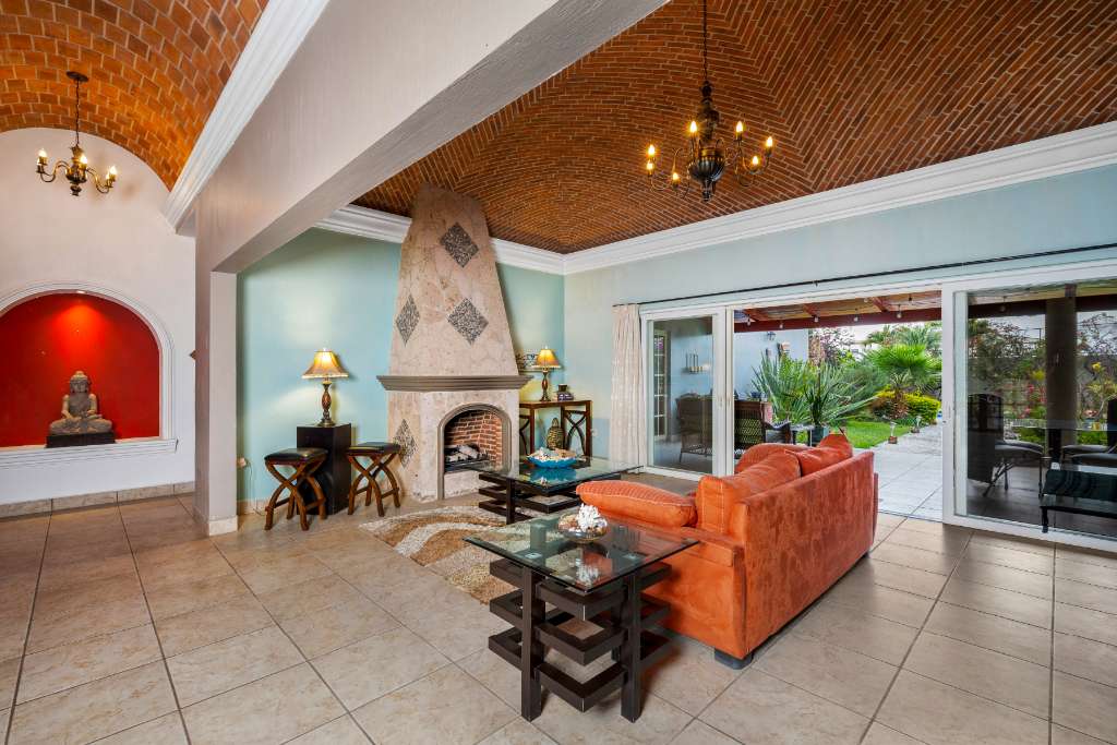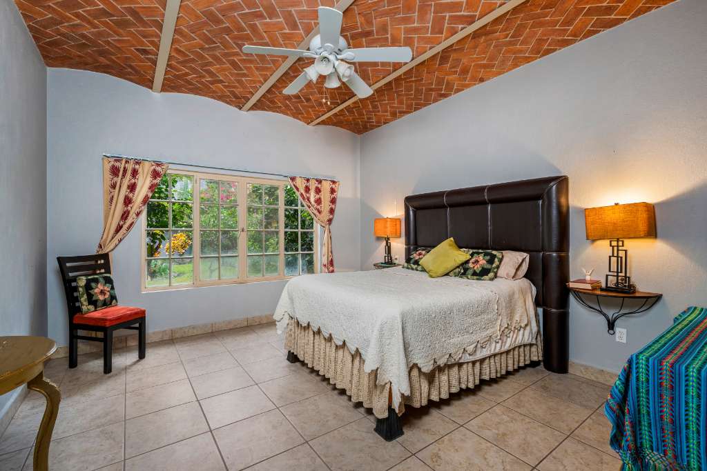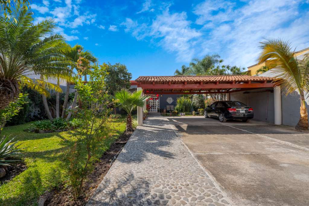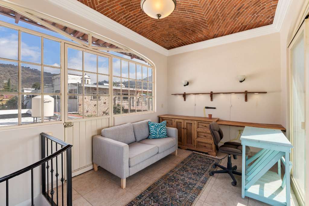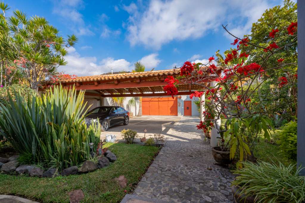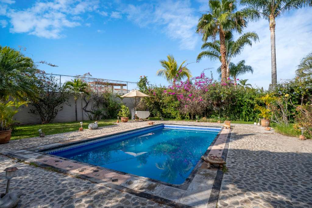 This property is a a two bedroom, 2.5 bathrooms home featuring beautiful gardens and a private pool. It is situated near Ponchos grocery & deli, and various restaurant, just 5 minutes from Chapala and 12 minutes from Ajijic. The upstairs office and balcony offer stunning mountain and lake views. The interior includes an open kitchen with wooden cabinets, granite counter tops and stainless steel appliances. A flowing dining area under an exposed brick vaulted ceiling.(Boveda) A glass patio door leads to an outdoor dining space surrounded by your gardens and your pool. 3 lots with parking for 6 vehicles. Extra "architectural plans" for a casita included.