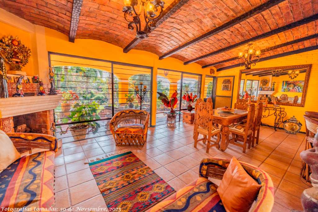 Welcome to Villa Donna, a one-of-a-kind estate in coveted Upper La Floresta. This 3-bedroom plus Den, 3-bath fully furnished casa, set on a gorgeous 1400 sq meter lot, bursts with the charm of old Mexico: broad arches, sun-yellow walls, carved wooden doors, colourful talavera tiles, and traditional brick boveda ceilings.