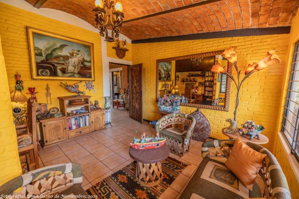 Included in the price is an impressive collection of art, handicrafts, and antiques from across Mexico including stone, and pottery sculptures, as well as statues including pre-Hispanic figures, a one-of-a-kind metal Day of the Dead bench, a vintage birdcage, and even an antique carousel!