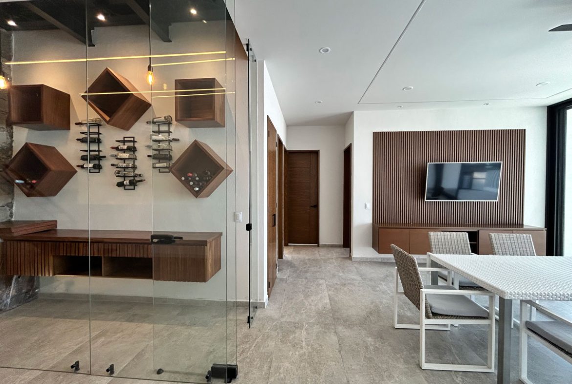 El área social es excepcional: una elegante cava de vinos complementa los espacios interiores, mientras que la sala de juegos se conecta de manera fluida con la terraza exterior, creando el entorno perfecto para reuniones y eventos.