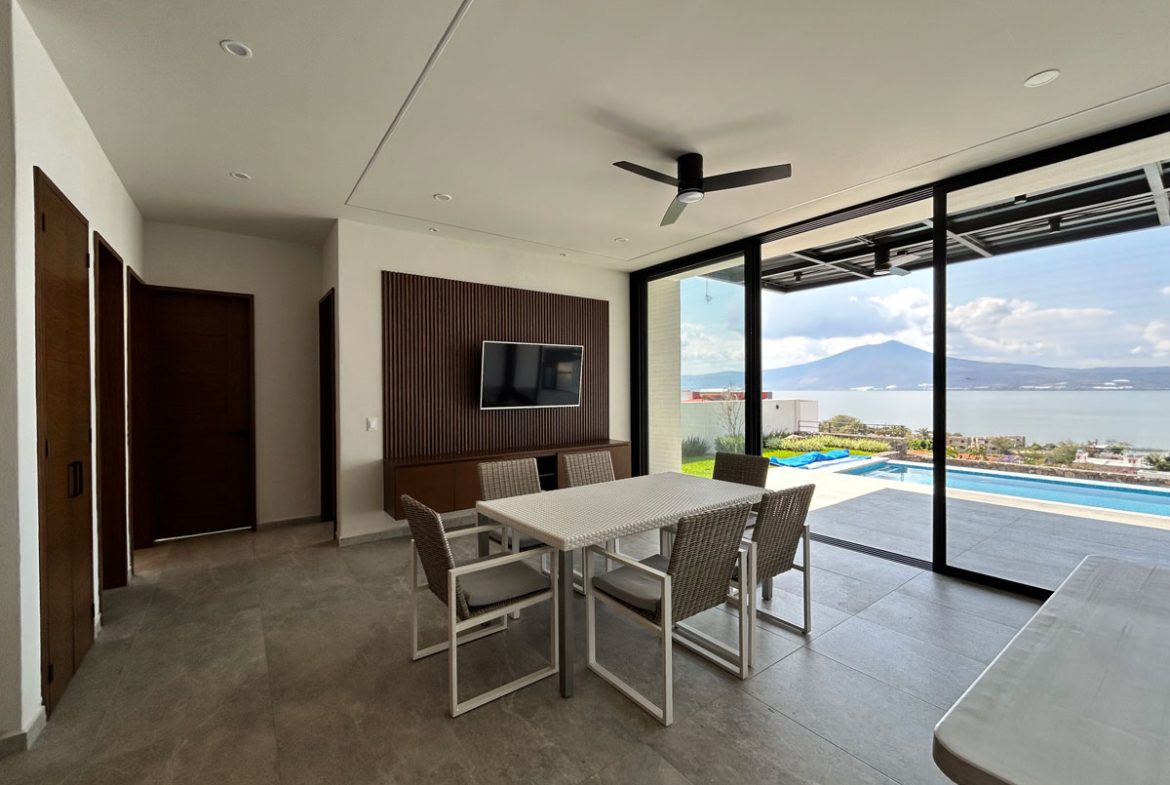 En el exterior, destaca una espectacular alberca infinita con vista al lago. Las terrazas y balcones en distintos niveles permiten aprovechar al máximo las vistas y la brisa natural.