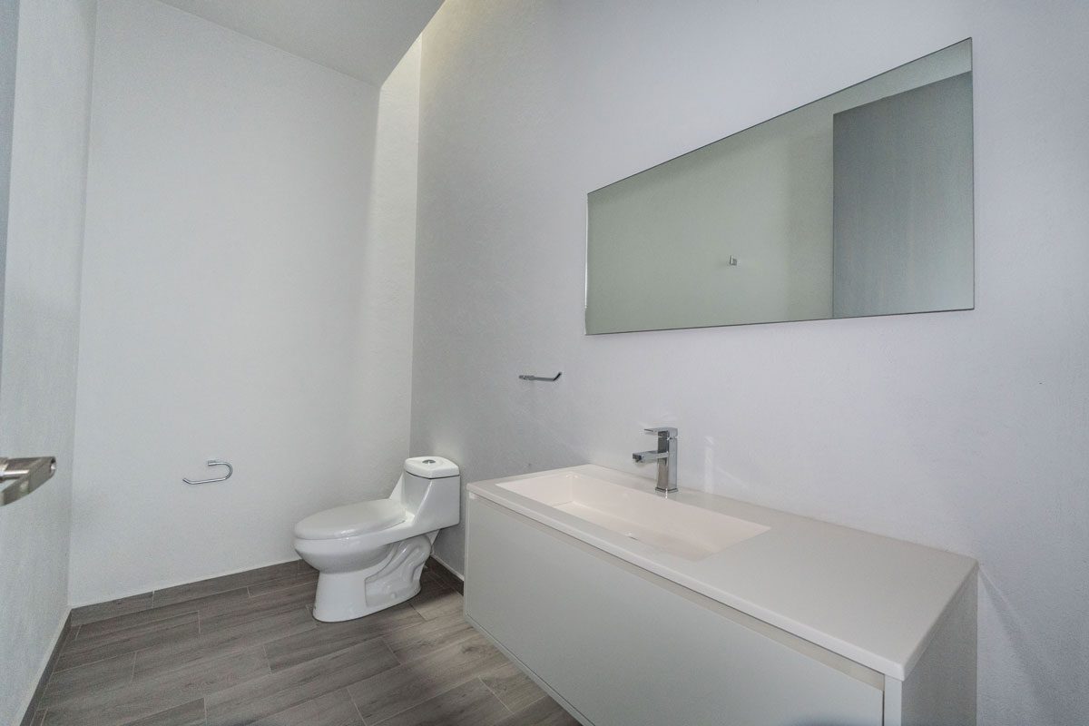 The second level showcases an elegant and expansive social area where the living and dining rooms blend harmoniously with the terrace, allowing you to enjoy panoramic views. The generously sized kitchen is fully equipped with granite countertops and stainless steel appliances. This level also includes a spacious laundry area and a half bathroom for guests, all framed by spectacular lake and mountain views.