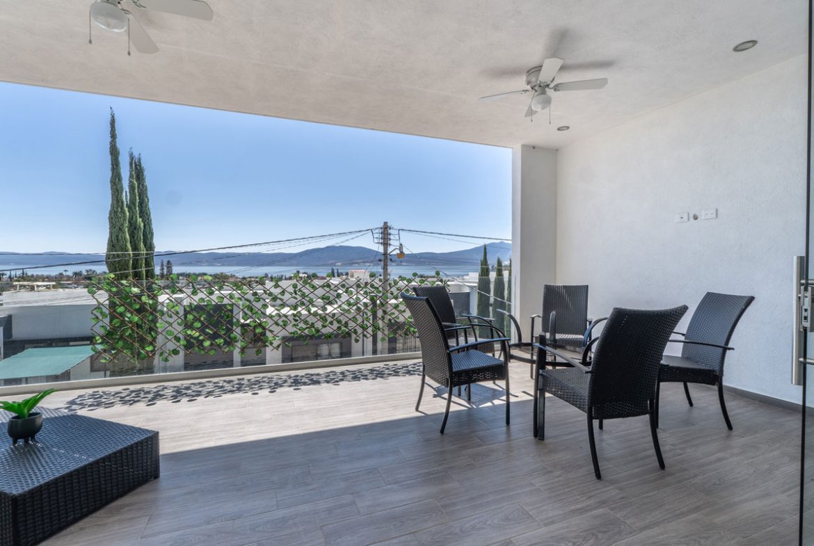 Three-level property designed to offer comfort, spaciousness, and incomparable views of the lake and mountains. On the first level, the home features covered parking for two vehicles, providing security and convenience.